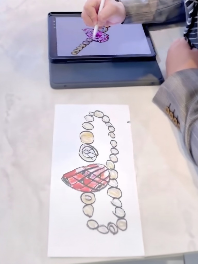 画用紙の上の絵が、実際に身に着けていただけるジュエリーになるまで。